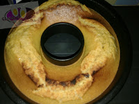 Depois de frio a ideia era cortar ao meio e colocar o chantily depois a fruta em cima e a parte de cima, o que fiz foi num bolo coloquei o chantily e a fruta e em cima coloquei o outro.