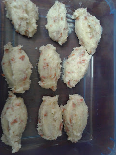 Passei tudo, provei e rectifiquei os temperos e com a ajuda de duas colheres modelei tipo "pasteis de bacalhau".
