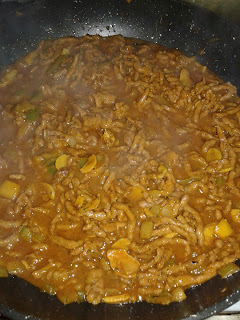 Junte a 250grs de carne mista picada, misture bem e tempere de sal e pimenta e as especiarias (pimenta preta moída, açafrão, canela, alho seco, caril, noz moscada, canela e salsa seca), deitar um bocado de vinho branco. Deixe a carne cozinhar até evaporar todo o líquido e ficar sequinha. Retire do lume e deixe arrefecer – se trabalhar com o recheio quente a massa desfaz-se.