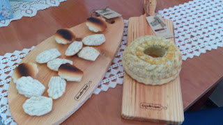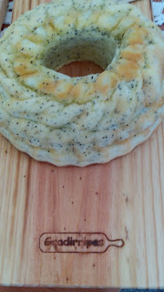 Eu fiz alterações, em vez do matcha coloquei 2 mãos cheias de espinafres congelados, para lhe dar uma cor mais esverdeada, como não tenho tabuleiro grande como o dele que fez a massa em dois discos e uma tira, para colocar á volta da forma, cozi o bolo numa forma, depois cortei uma "tampa" para colocar o ganache no interior.