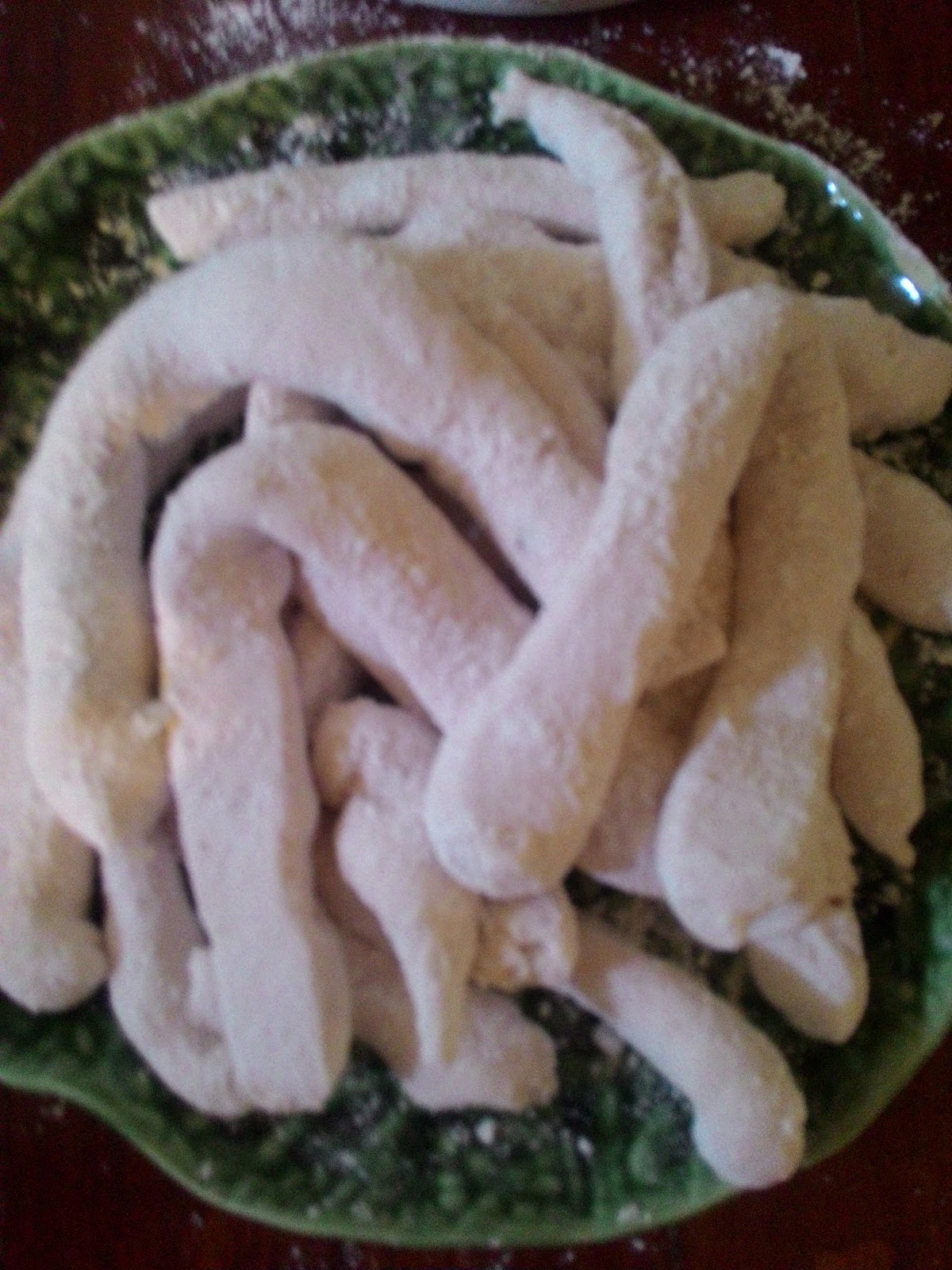Depois é colocar mais açúcar em pó em cima levar ao frio até solidificar ( eu saltei este passo antes de conseguir colocar o açúcar em cima fui ralhar com os pequenos mais ou menos 6 minutos e quando voltei já estava solidificado, rolei no açúcar e cortei com a tesoura). Hoje estavam iguais a ontem parecem mesmo de compra.
