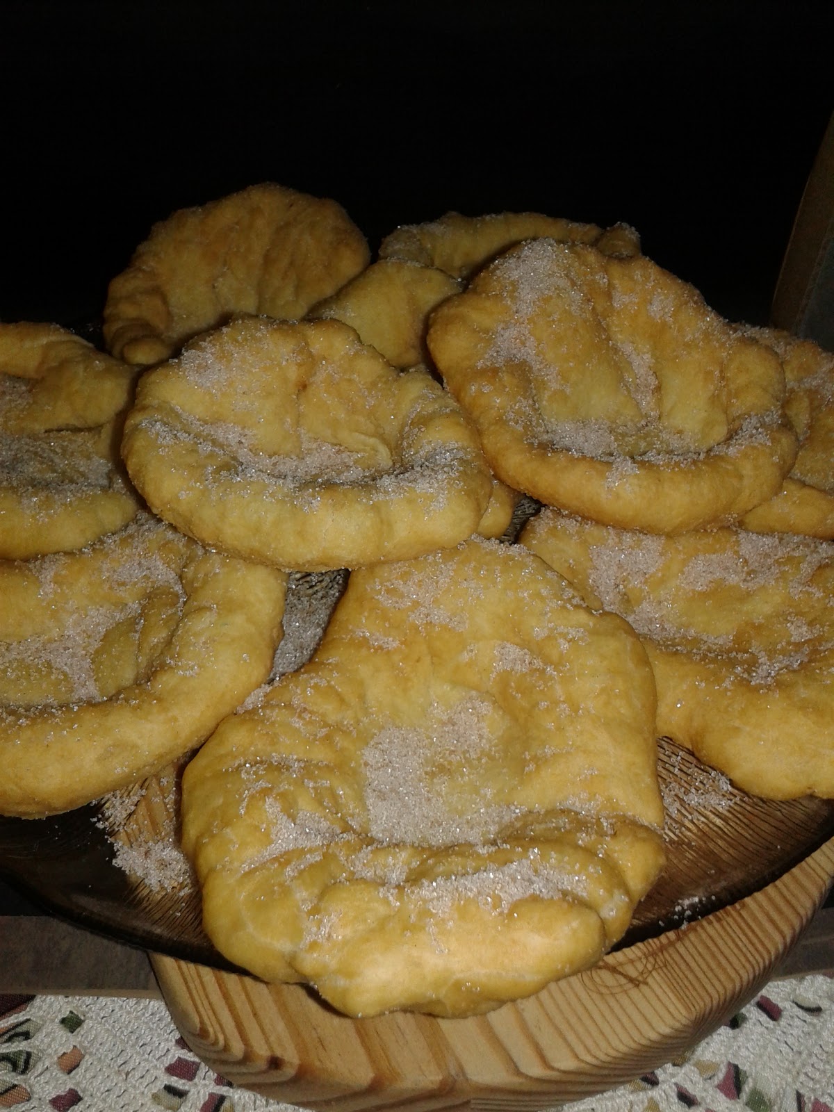 Fritar em oleo bem quente, escorrer em papel absorvente e passar em açúcar e canela.