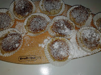 Depois de prontos, retirar do forno, passar uma faca ao redor de cada pastel de forma a garantir que desenforma bem. Deixar amornar um pouco antes de os transferir para forminhas de papel.
