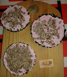 Usei 1 embalagem de "oreos" marca branca e triturei com creme e tudo, acrescentei um pouco de margarina derretida pois só o creme não chegou, forrei umas formas de tarte pequenas. Levar ao frio.