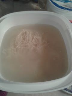 Bem aqui não tem muito que se lhe diga, coloquei bastante água, pois a massa gosta de cozer com espaço, e sal, levei ao microondas cerca de 5 minutos (controlem os vosso microondas a água fica como se estivesse a começar a ferver) depois coloquei a massa, neste caso aletria, e coloquei o tempo que dizia na embalagem 3 minutos.